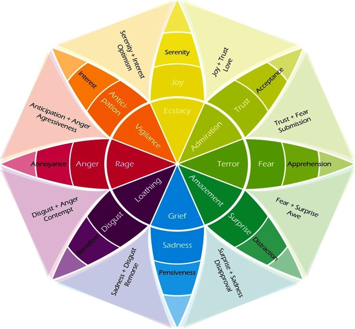From admiration to acceptance – the above wheel helps us to under how emotions present themselves. They can fluctuate, and be a mixture of many. Joy may have various secondary emotions or feelings, ranging from optimism to enthrallment; which then later translates to its tertiary level which is hope.