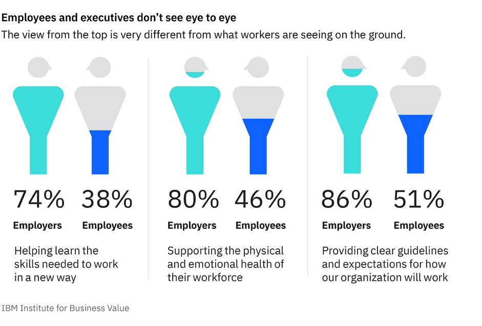 However, there is an evident gaping chasm between what executives think they are providing their employees and how those employees experience. There is a massive opportunity for leaders and innovators to get this sorted.