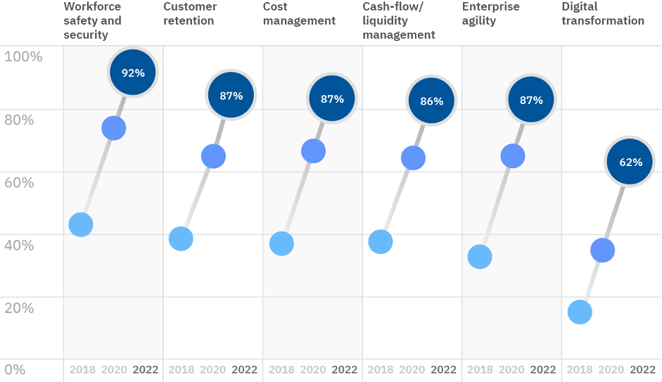 Workforce safety, security, cost management, and enterprise agility are stepping up and paving the way towards being the priority.